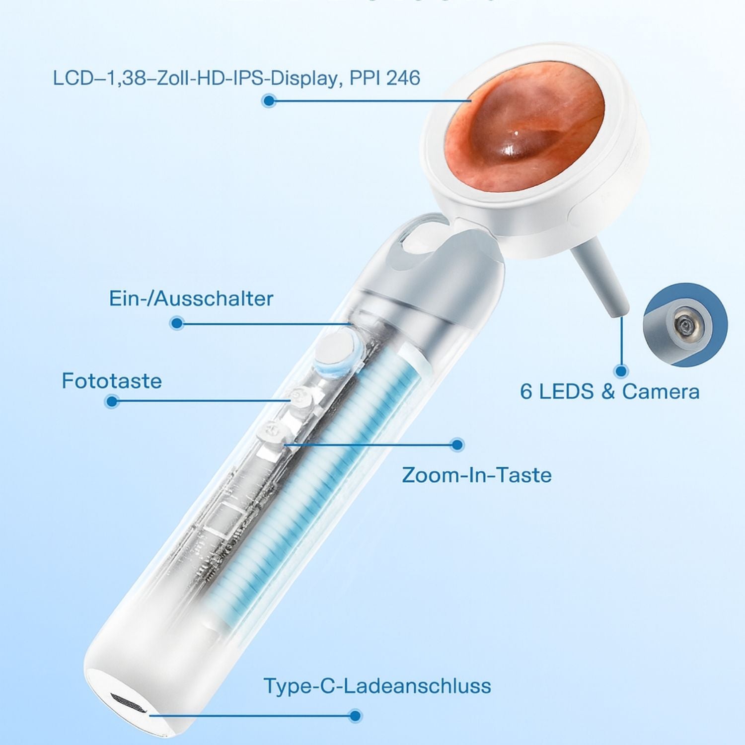 Fantastische Bildqualität! Das digitale Otoskop ermöglicht es mir, Entzündungen im Ohr meiner Kinder frühzeitig zu erkennen. Die Zoom-Funktion ist präzise und die Fotografier-Option perfekt für die Dokumentation. Schnelle Problemlösung garantiert!